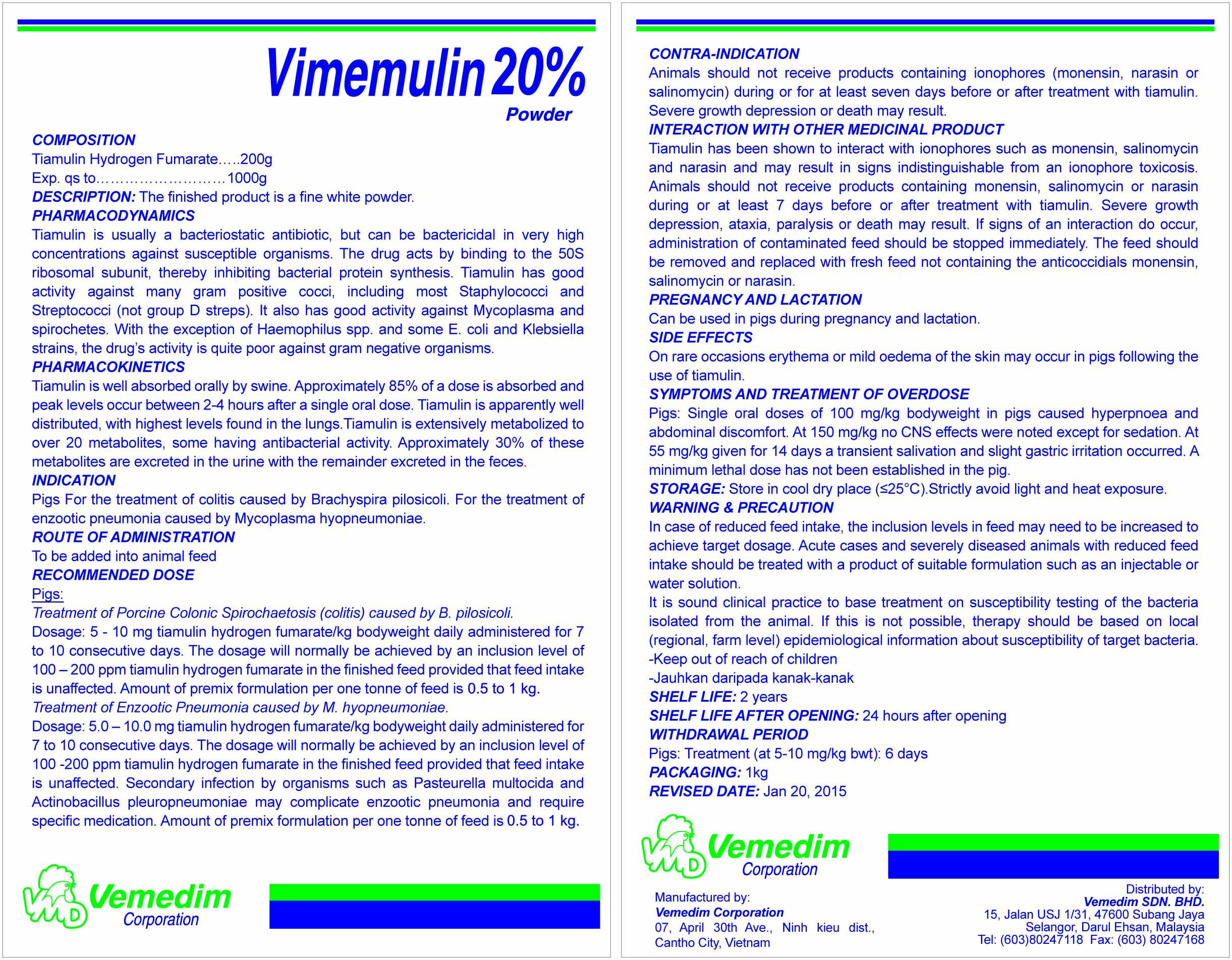 | Product Name : VIMEMULIN 20% Powder |