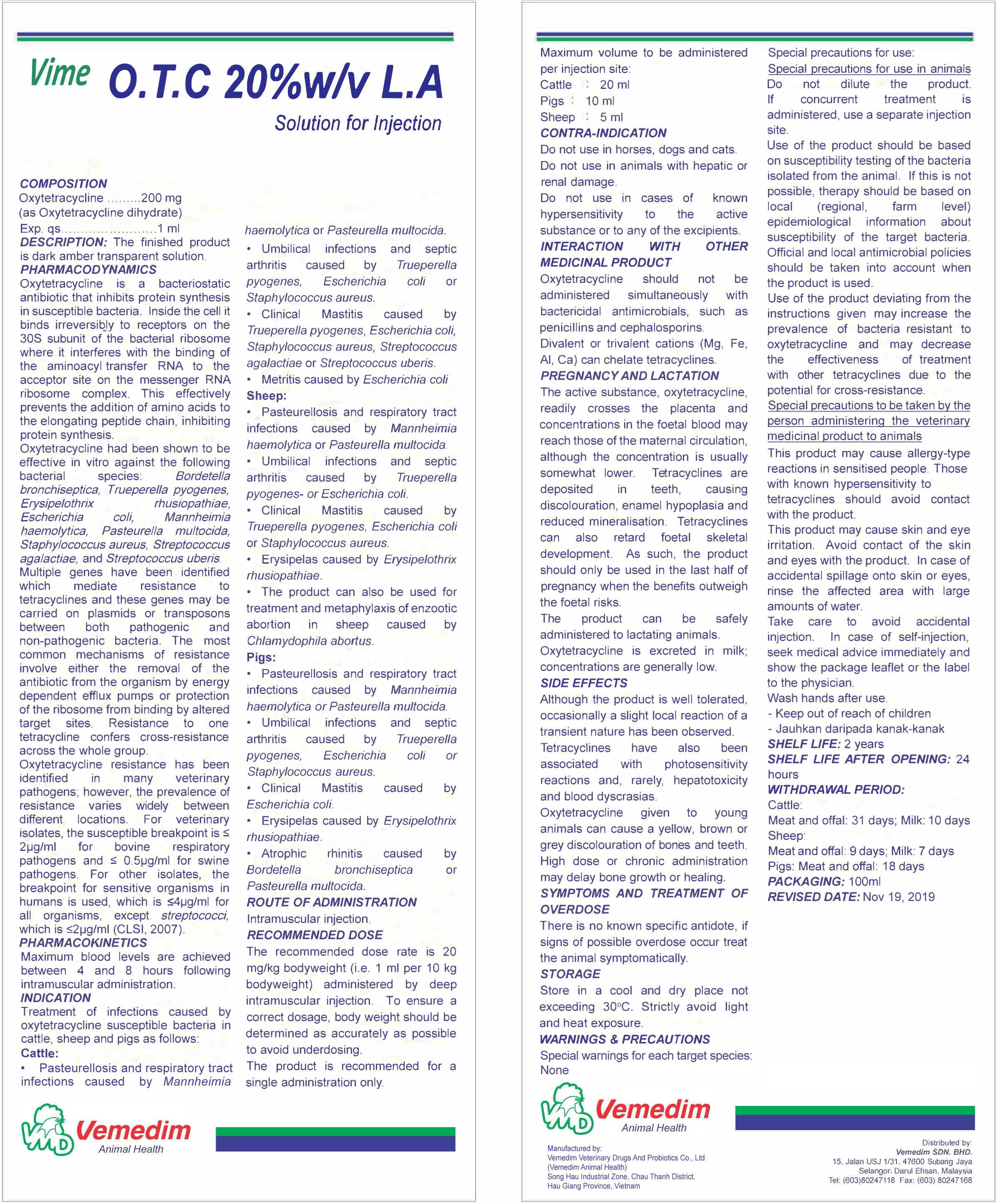| Product Name : Vime O.T.C 20%w/v L.A Solution for Injection |